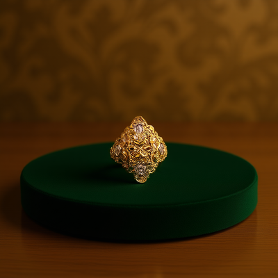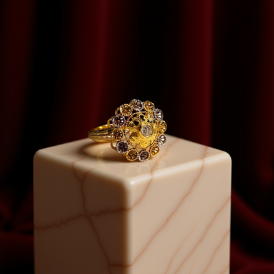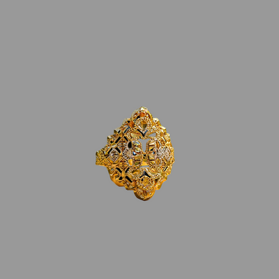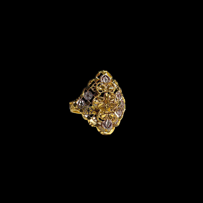 24K Gold Plated Intricate Filigree Ring with Sparkling Stones – Elegant Jewelry for Women