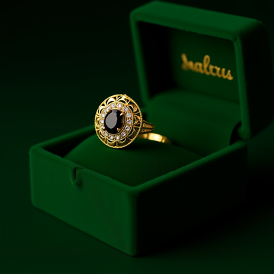 24K Gold Plated Elegant Ring with Black Onyx and Diamond Accents