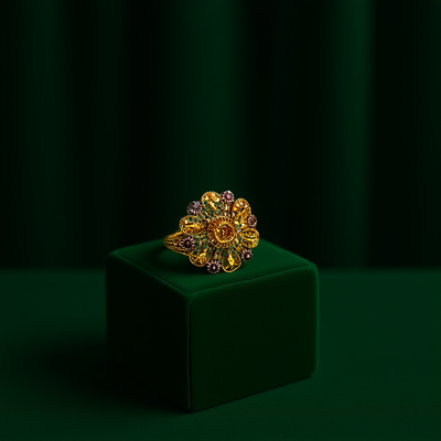 24K Gold Plated Ring – Elegant Floral Design with Sparkling Accents