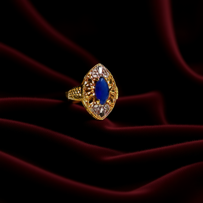 24K Gold Plated Elegant Blue Stone Ring – Luxurious Jewelry for Women